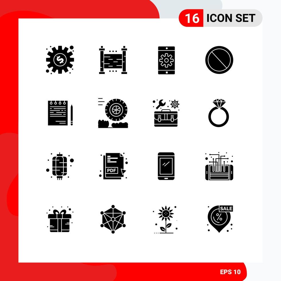Solid Glyph Pack of 16 Universal Symbols of competitive user application prohibited interface Editable Vector Design Elements Free Vector