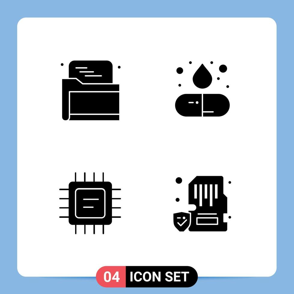 Mobile Interface Solid Glyph Set of Pictograms of seo microchip data pill card Editable Vector Design Elements Free Vector