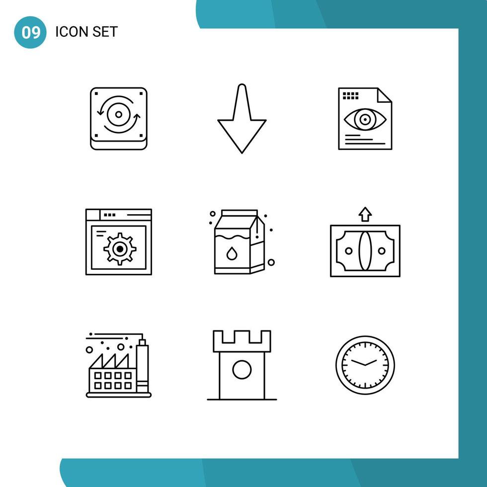 Pack of 9 Modern Outlines Signs and Symbols for Web Print Media such as business pak computing package internet Editable Vector Design Elements