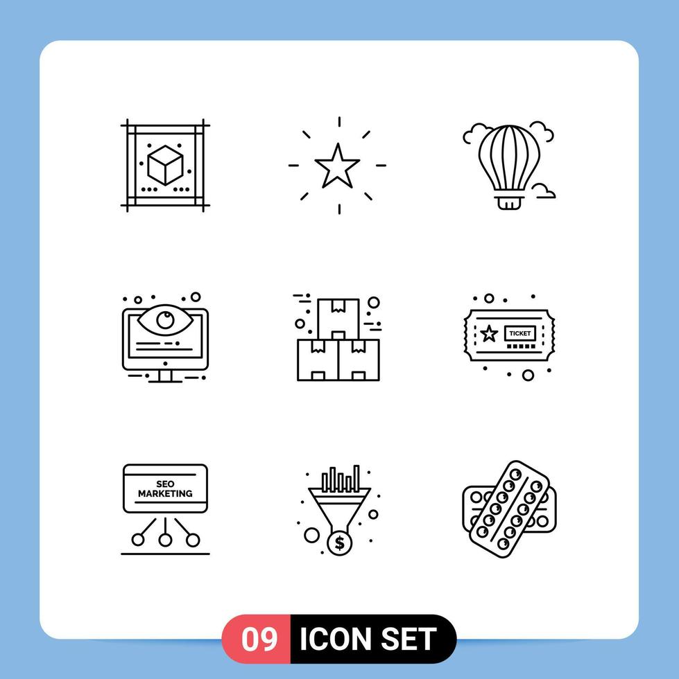 Group of 9 Modern Outlines Set for box options balloon monitoring configuration Editable Vector Design Elements Free Vector