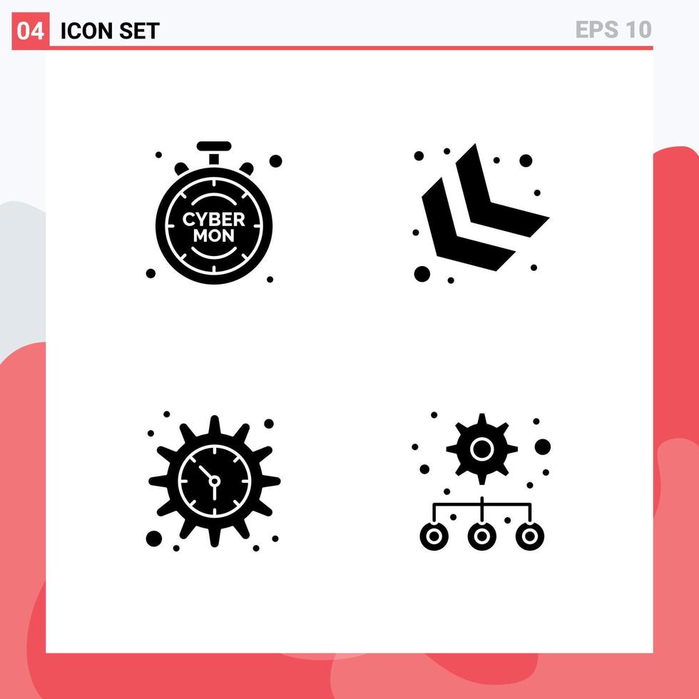 Pack of 4 Modern Solid Glyphs Signs and Symbols for Web Print Media such as cyber time time down left hierarchy Editable Vector Design Elements