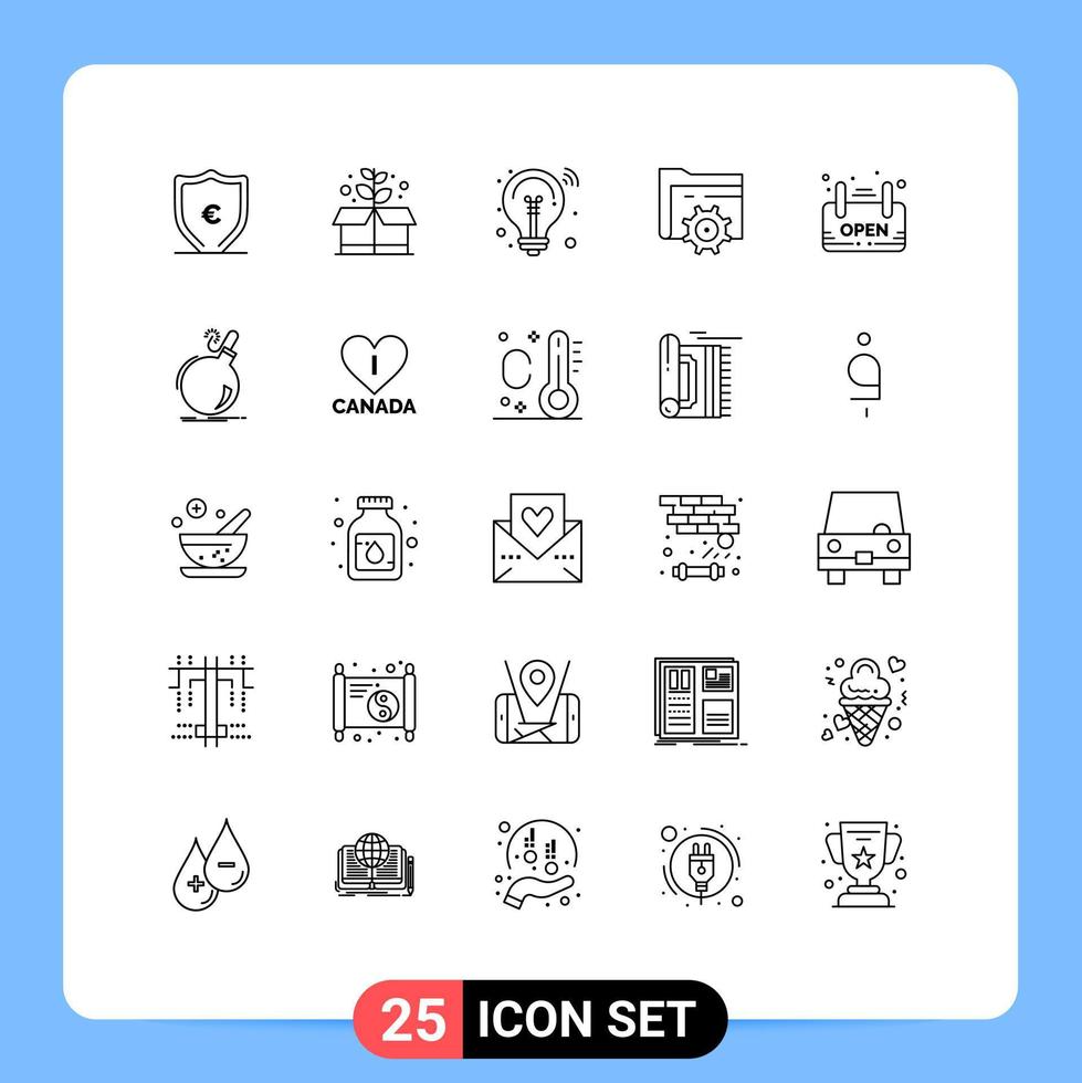 25 Universal Lines Set for Web and Mobile Applications signage open idea computing setting Editable Vector Design Elements Free Vector