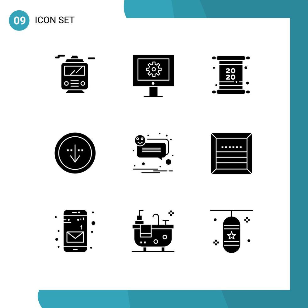 Universal Icon Symbols Group of 9 Modern Solid Glyphs of bubble interface invitation import down Editable Vector Design Elements Free Vector