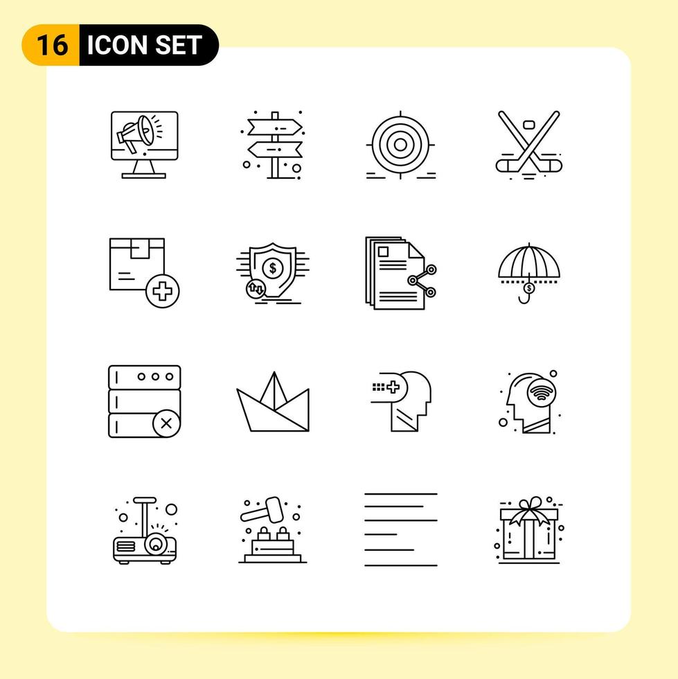 Pack of 16 Modern Outlines Signs and Symbols for Web Print Media such as olympics hockey target game objective Editable Vector Design Elements