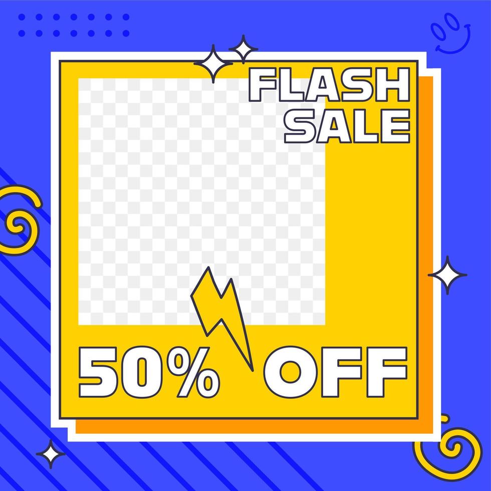 Social media post template in retro design style. Feed template with empty space for picture. Pro Vector