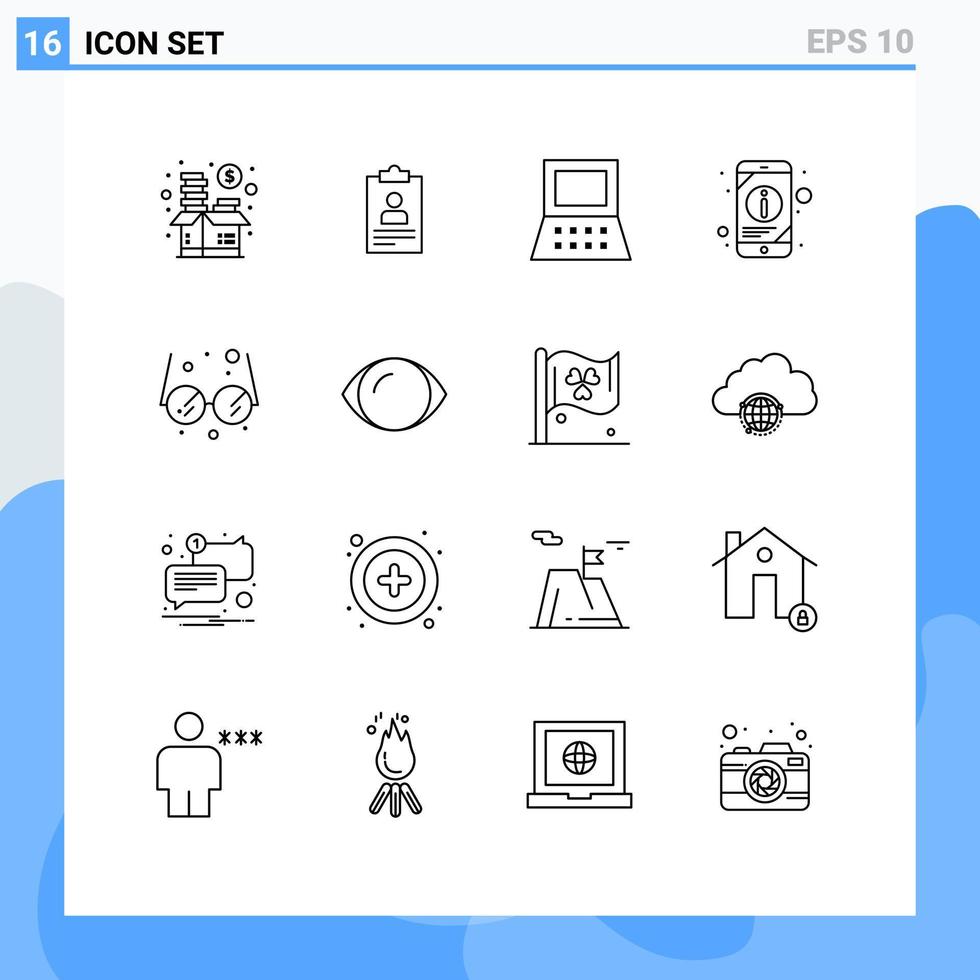Pictogram Set of 16 Simple Outlines of school mobile information curriculum mobile hardware Editable Vector Design Elements Free Vector