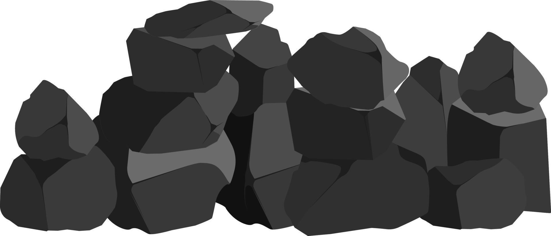 A set of black charcoal of various shapes.Collection of pieces of coal, graphite, basalt and anthracite. The concept of mining and ore in a mine.Rock fragments,boulders and building material. Pro Vector