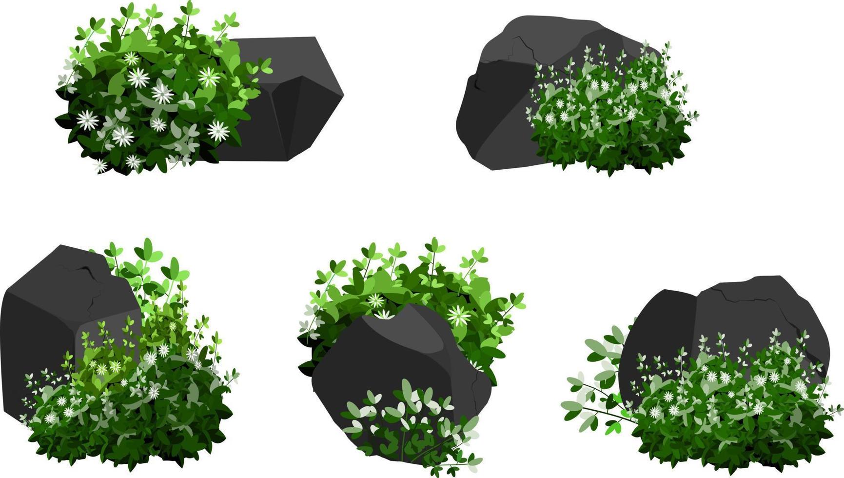 A set of black charcoal of various shapes.Collection of pieces of coal, graphite, basalt and anthracite. The concept of mining and ore in a mine.Rock fragments,boulders and building material. Pro Vector