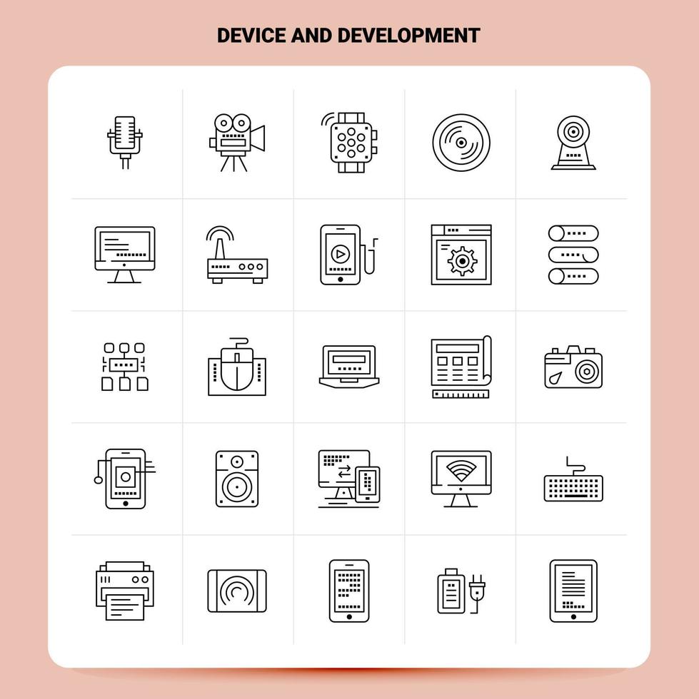 OutLine 25 Device And Development Icon set Vector Line Style Design Black Icons Set Linear pictogram pack Web and Mobile Business ideas design Vector Illustration