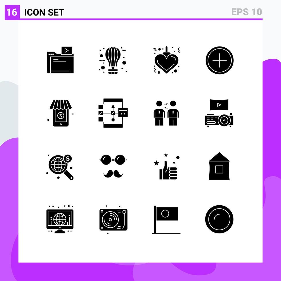 Group of 16 Solid Glyphs Signs and Symbols for online new journey create add Editable Vector Design Elements
