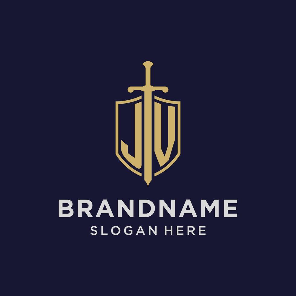 JV logo initial monogram with shield and sword design Pro Vector and Pro SVG