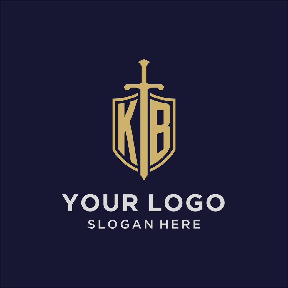 KB logo initial monogram with shield and sword design Pro Vector and Pro SVG