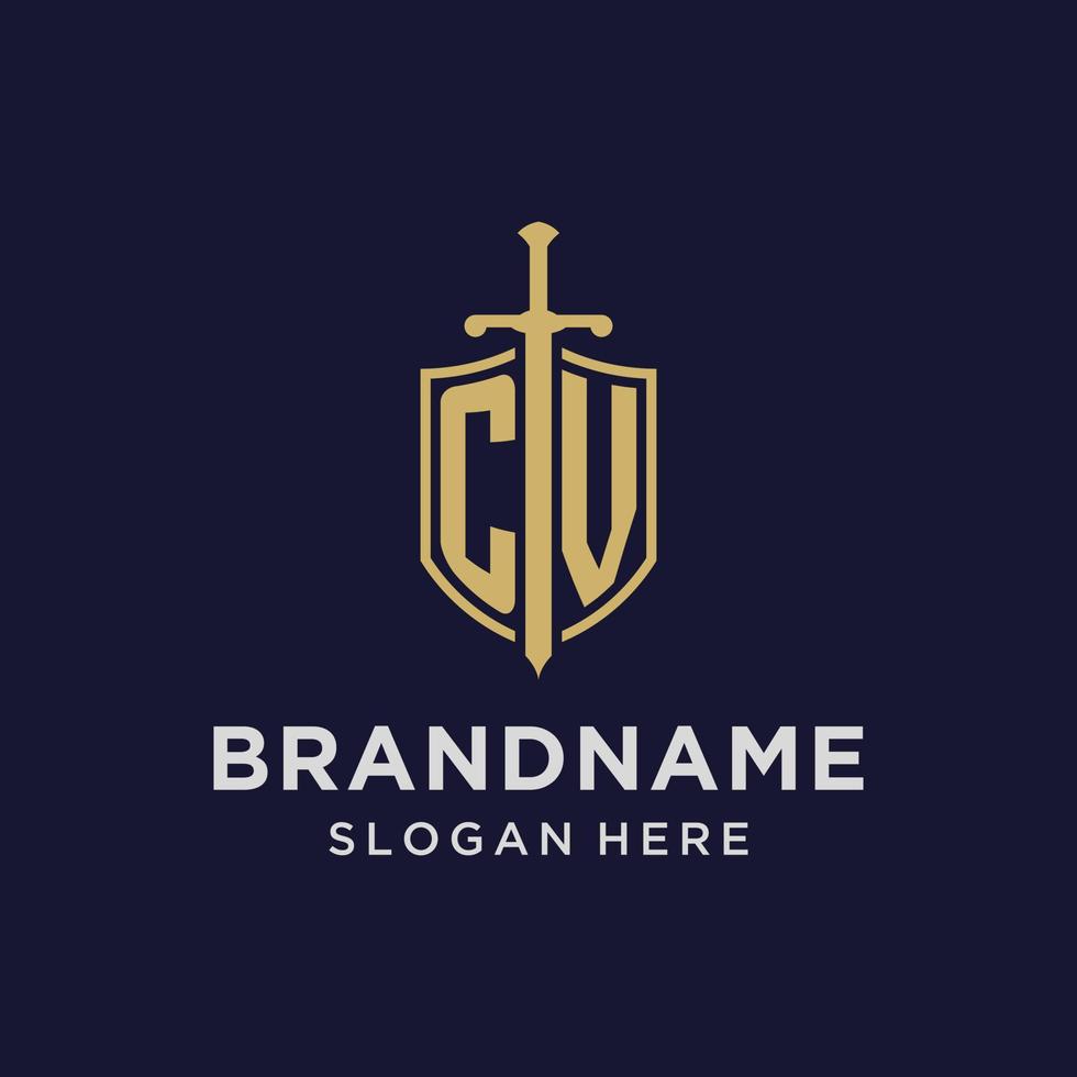 CV logo initial monogram with shield and sword design Pro Vector and Pro SVG