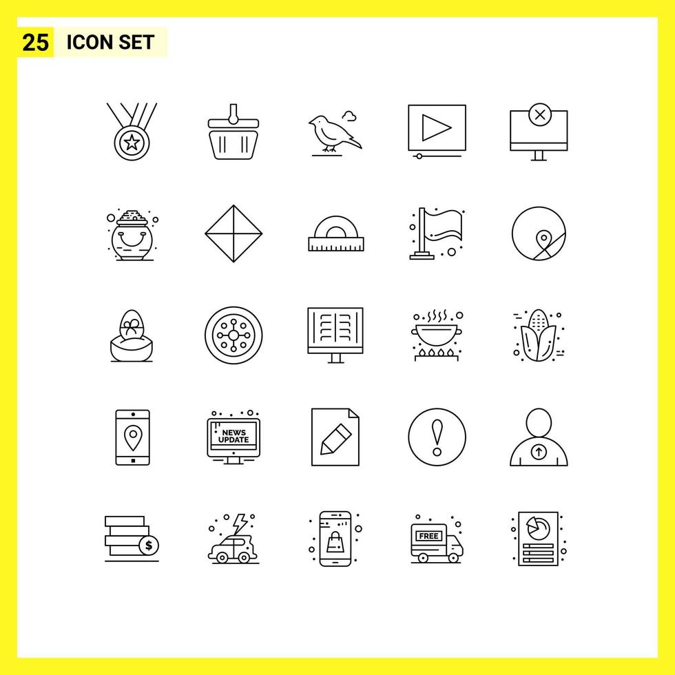 User Interface Pack of 25 Basic Lines of gadget computers bird project video Editable Vector Design Elements Free Vector