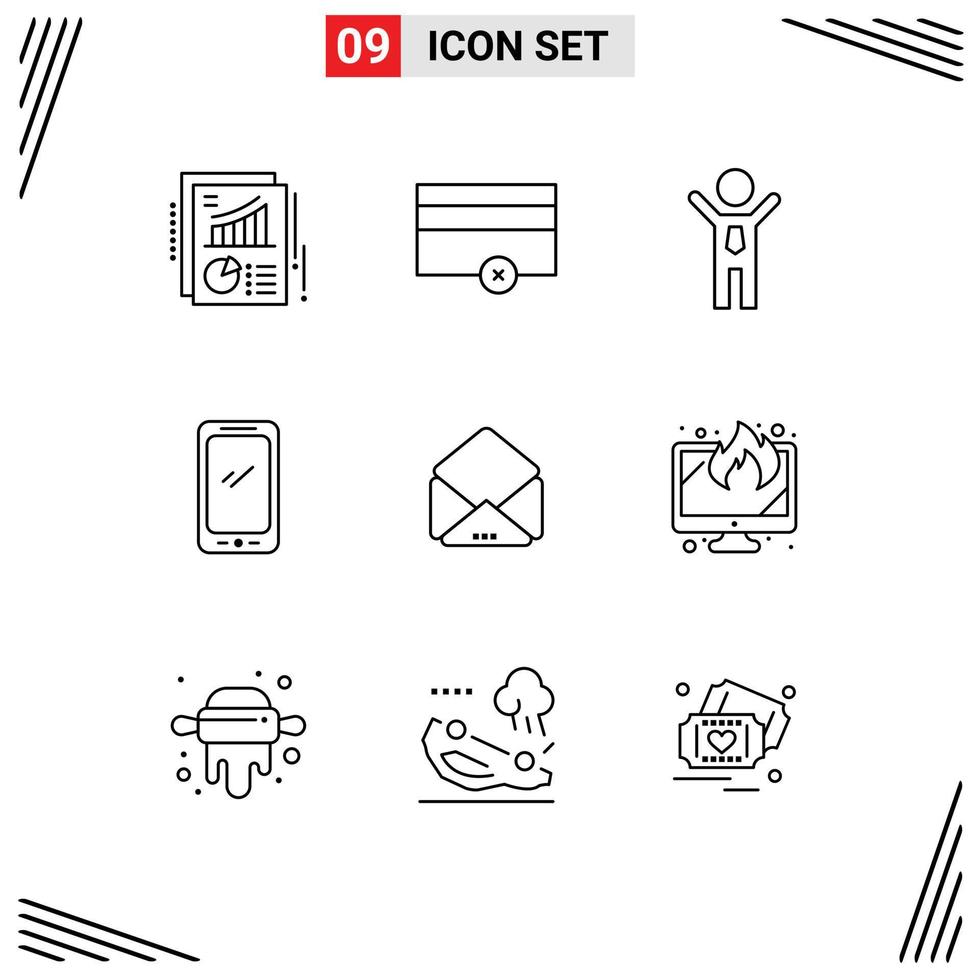 Set of 9 Vector Outlines on Grid for mail iphone business android smart phone Editable Vector Design Elements