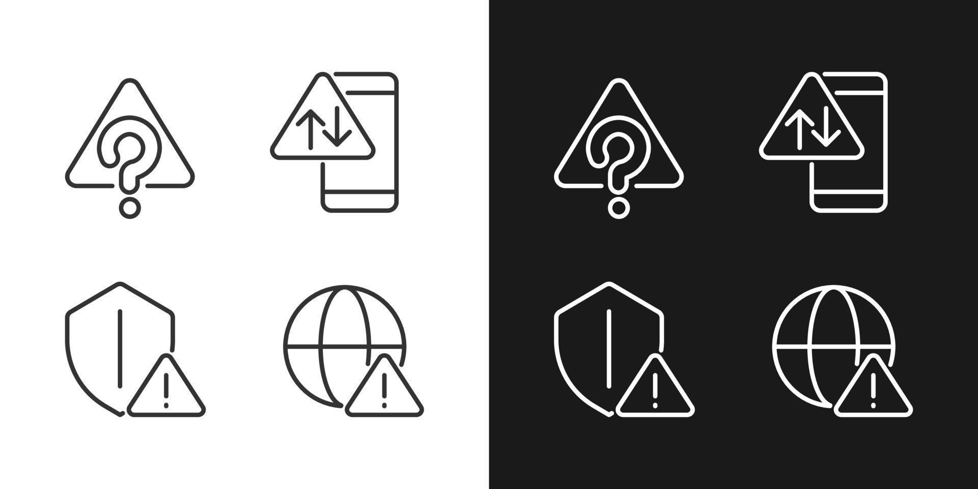 Internet connection issues pixel perfect linear icons set for dark, light mode. Unknown system error. Smartphone data problem. Silhouette symbols. Solid pictogram pack. Vector isolated illustration Pro Vector