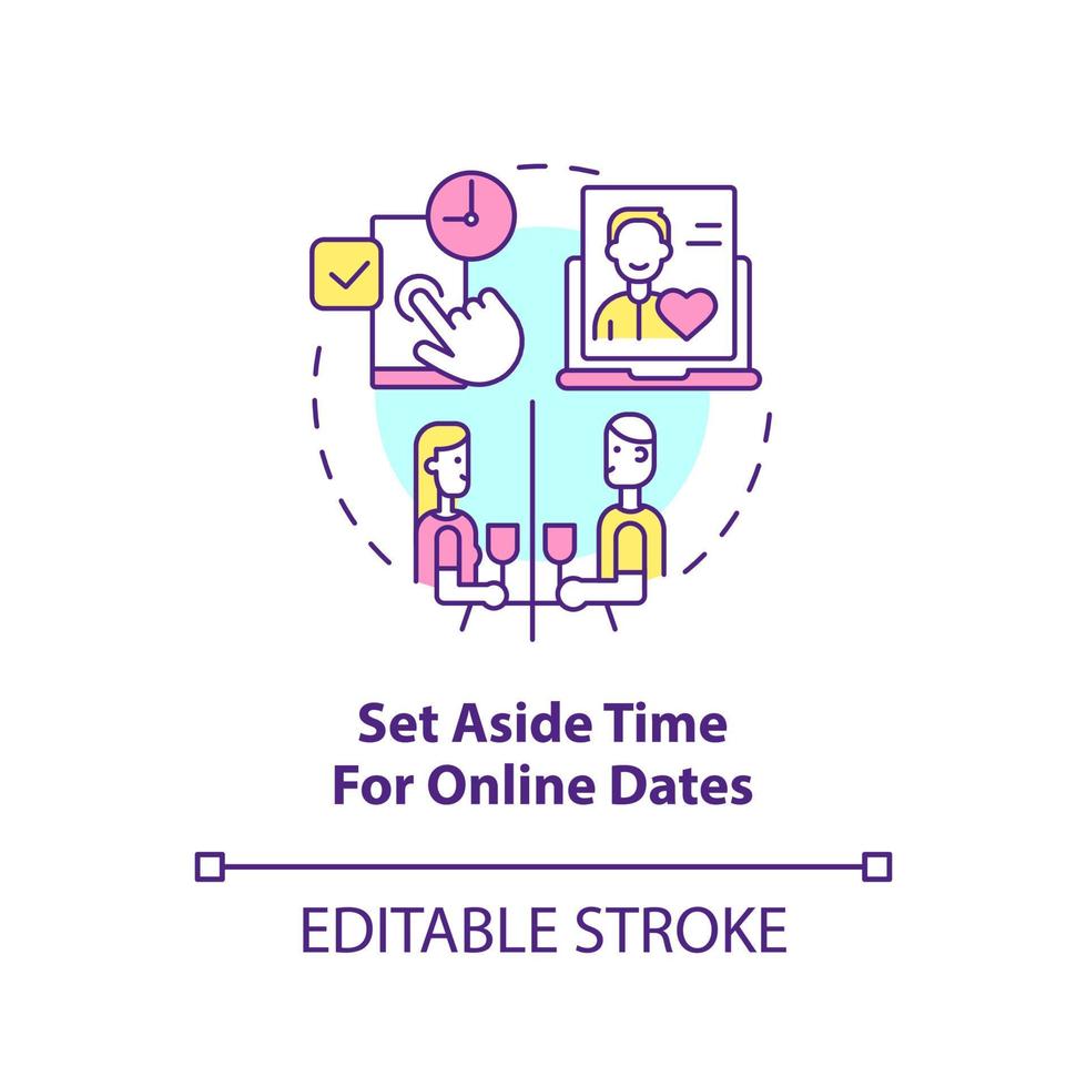 Set aside time for online dates concept icon. Surviving long-distance relationship abstract idea thin line illustration. Isolated outline drawing. Editable stroke. Pro Vector