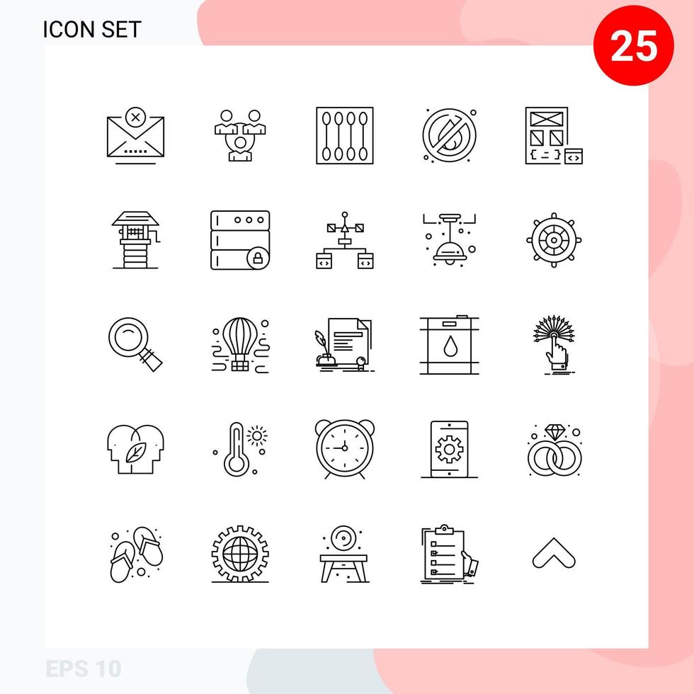 Mobile Interface Line Set of 25 Pictograms of coding camping beauty no salon Editable Vector Design Elements Free Vector