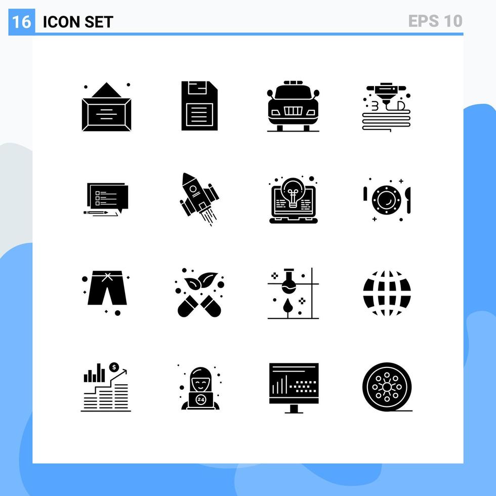 16 User Interface Solid Glyph Pack of modern Signs and Symbols of sms printer storage device plastic gadget Editable Vector Design Elements Free Vector
