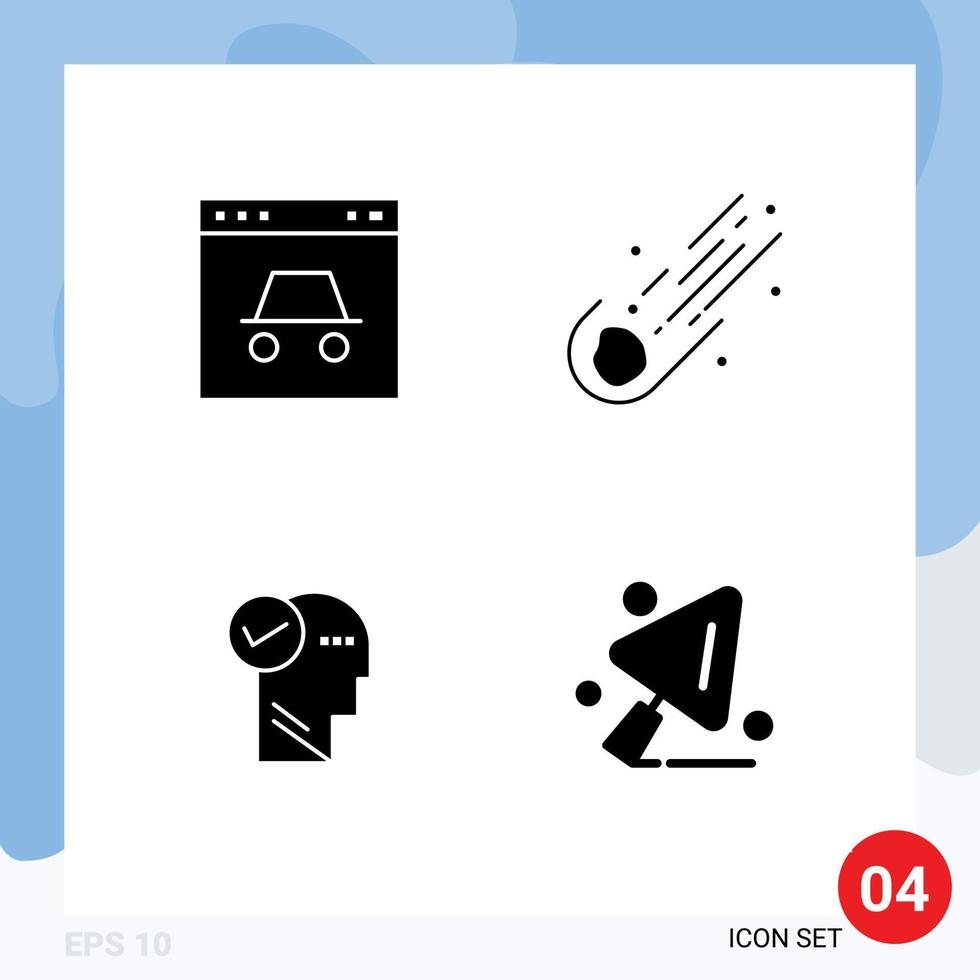 Set of 4 Vector Solid Glyphs on Grid for hacker comet security astronomy head Editable Vector Design Elements