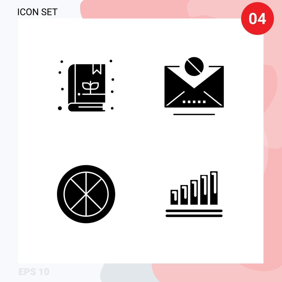 Modern Set of 4 Solid Glyphs and symbols such as book household email message window Editable Vector Design Elements