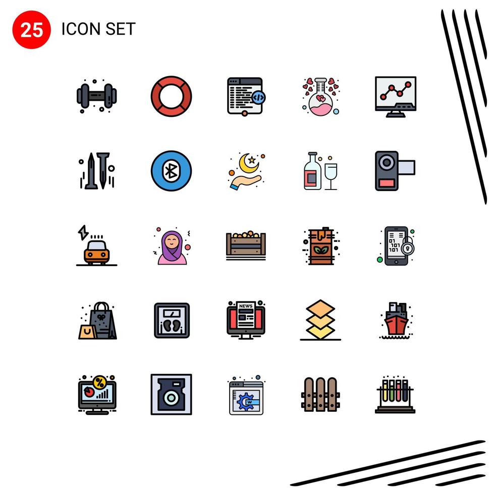 Set of 25 Modern UI Icons Symbols Signs for analytic heart code flask coding Editable Vector Design Elements