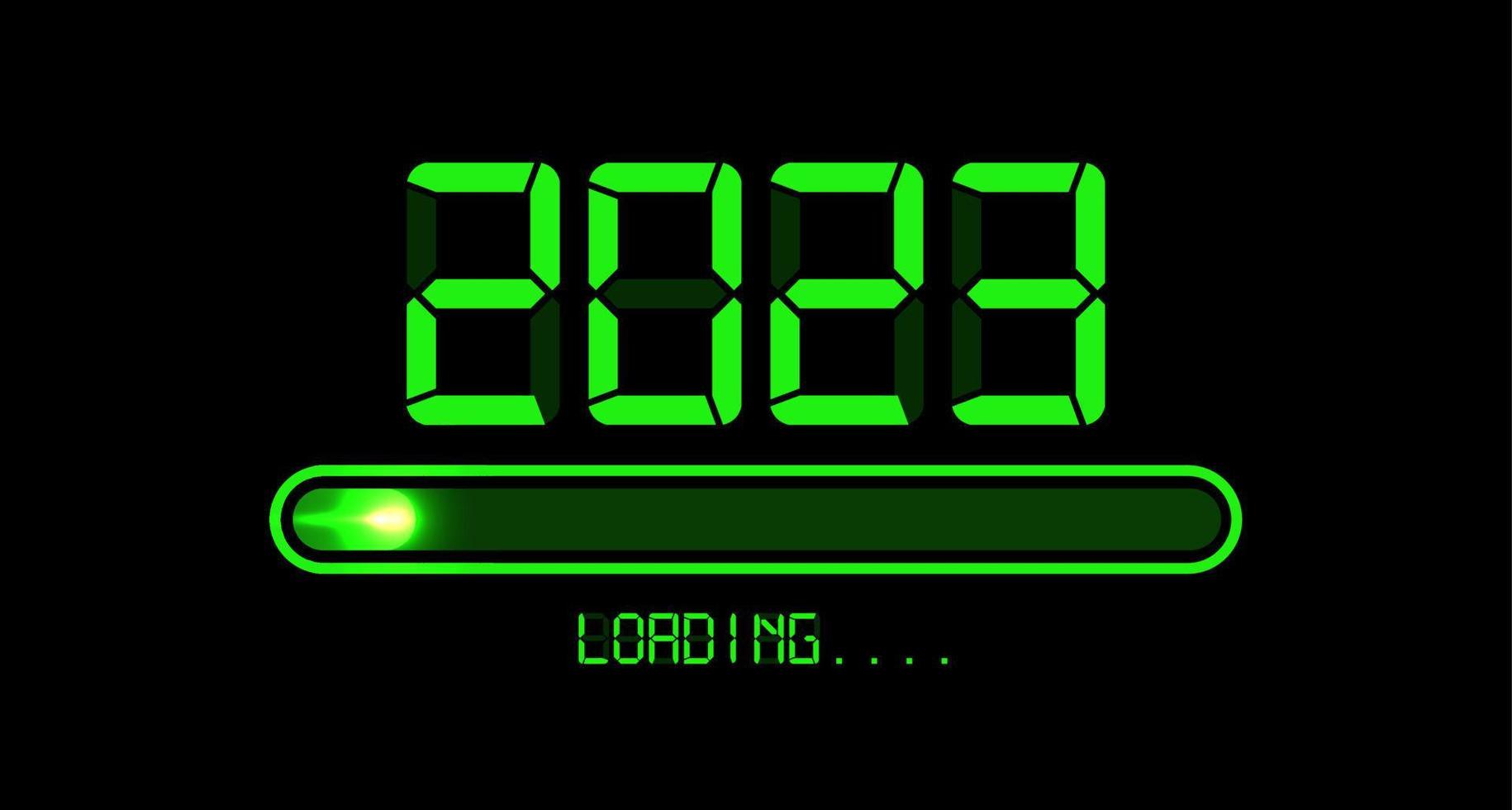 Loading to up 2023 Happy new year. Green led neon digital time style. Progress bar almost reaching new year eve. Vector illustration with display 2023 loading isolated or black background Pro Vector