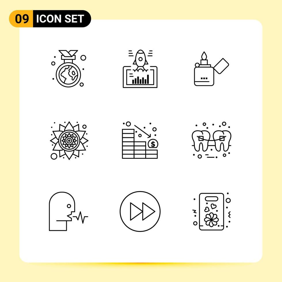 9 Thematic Vector Outlines and Editable Symbols of decrease rangoli web pattern zippo Editable Vector Design Elements