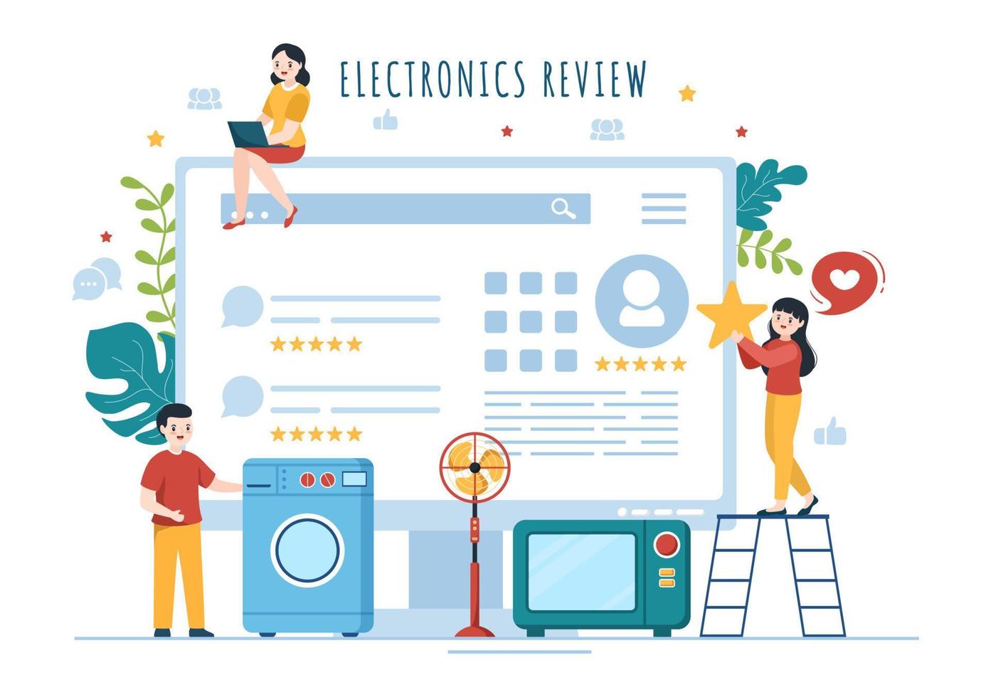 Electronics Review with Customer Rating Quality of Service or Application and Provide Feedback in Flat Cartoon Hand Drawn Templates Illustration Pro Vector