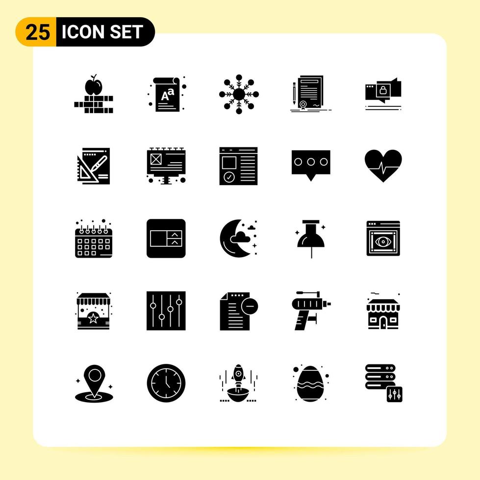 Editable Vector Line Pack of 25 Simple Solid Glyphs of security chat snow document contract Editable Vector Design Elements