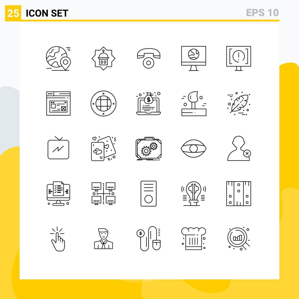 Group of 25 Lines Signs and Symbols for network connect islam computer phone Editable Vector Design Elements Free Vector