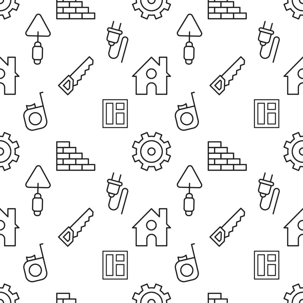 Pattern of house, window, saw, measure tape made of various line icons. Perfect for web sites, wrapping, printing on different covers Pro Vector