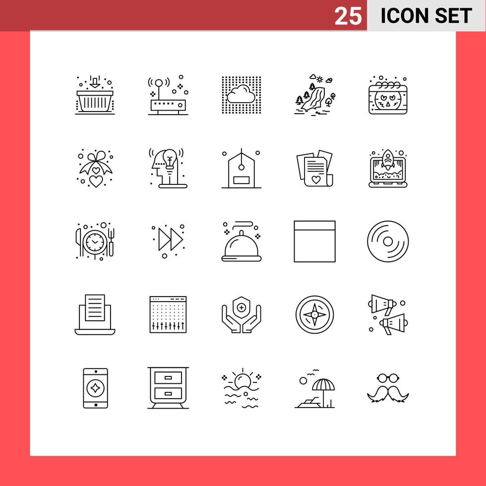Editable Vector Line Pack of 25 Simple Lines of nature pain cloud tree layers Editable Vector Design Elements