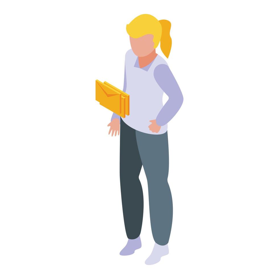 Girl read email icon isometric vector. Computer reading mail Pro Vector
