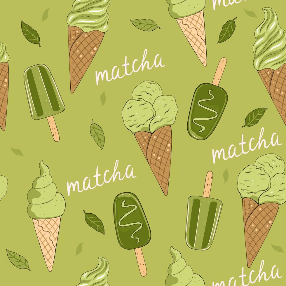 Seamless pattern with matcha ice cream. Vector graphics. Pro Vector