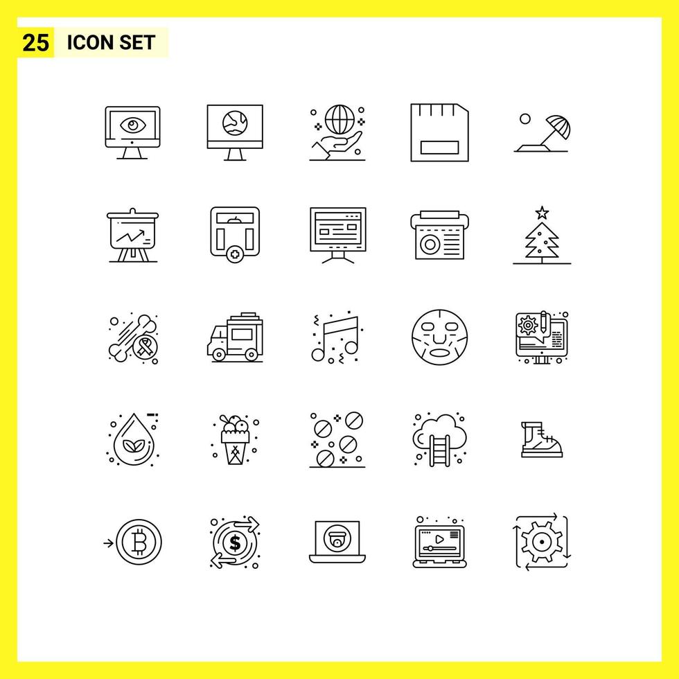 Set of 25 Modern UI Icons Symbols Signs for computers international connect hand global Editable Vector Design Elements
