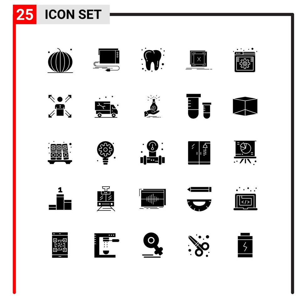 Editable Vector Line Pack of 25 Simple Solid Glyphs of server message interface application tooth Editable Vector Design Elements Free Vector
