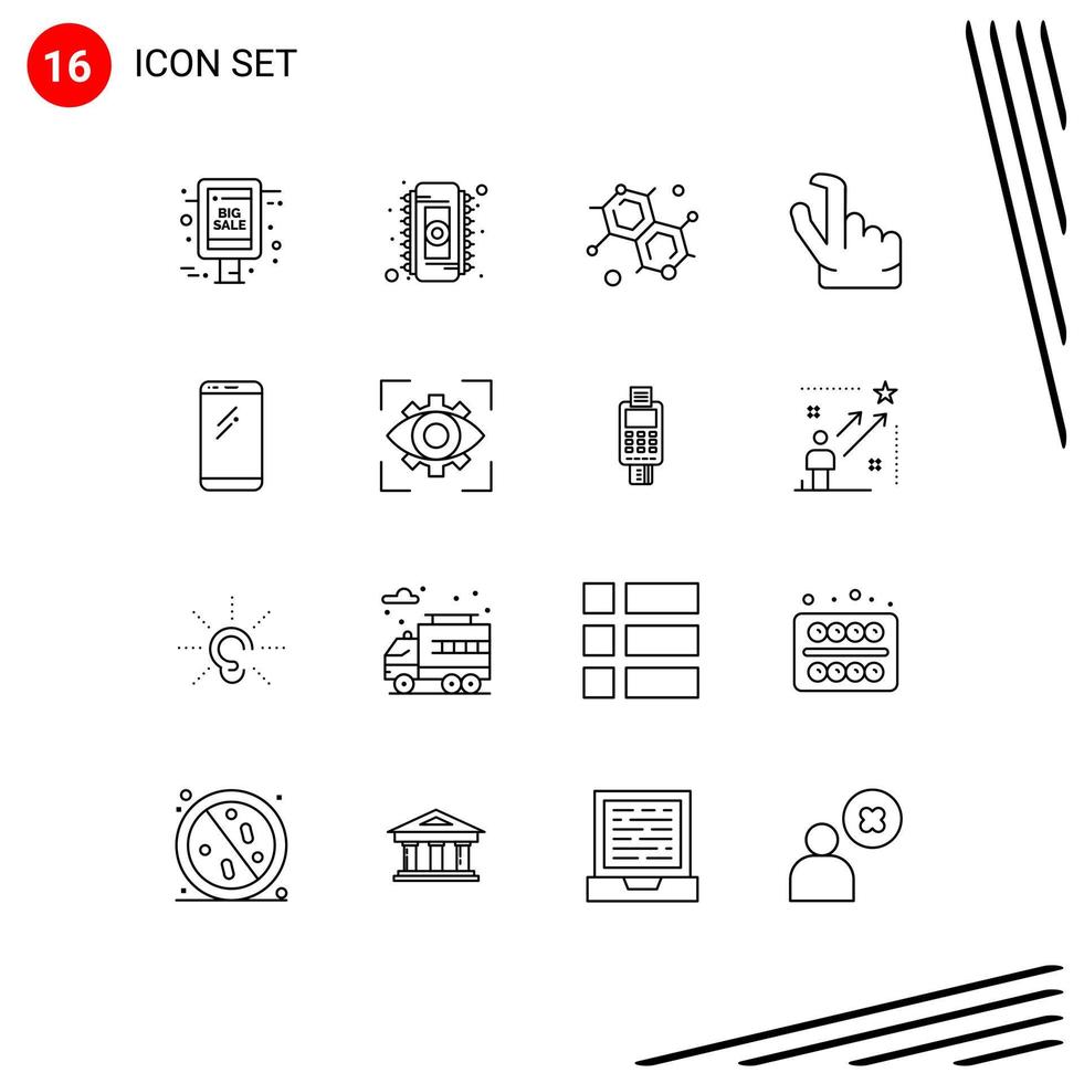 User Interface Pack of 16 Basic Outlines of android smart phone chemist phone pinch Editable Vector Design Elements