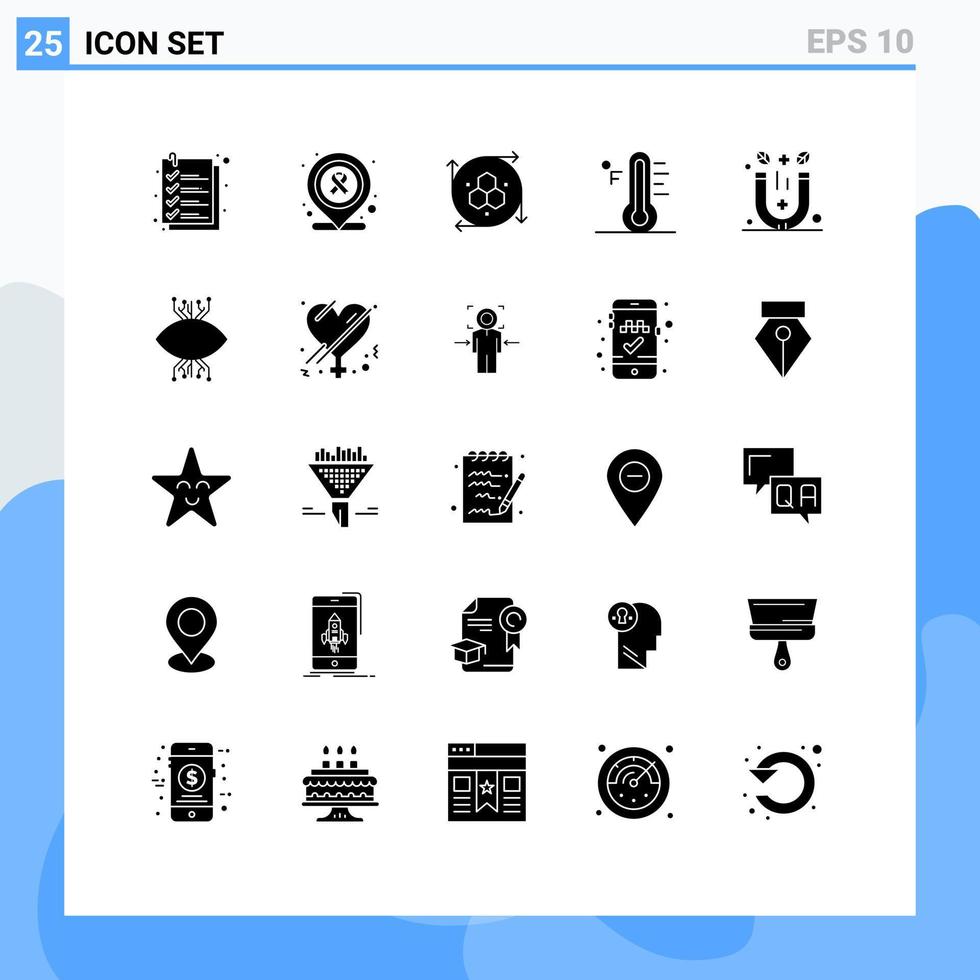 25 Universal Solid Glyphs Set for Web and Mobile Applications physics temperature modeling api sun light Editable Vector Design Elements Free Vector