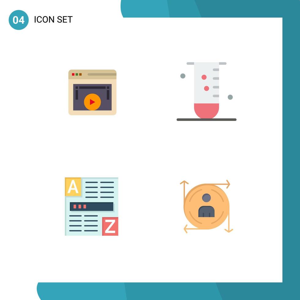 Pictogram Set of 4 Simple Flat Icons of page science video glassware web Editable Vector Design Elements