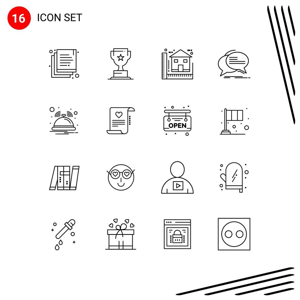 16 Outline concept for Websites Mobile and Apps bell speech blueprint communication bubble Editable Vector Design Elements