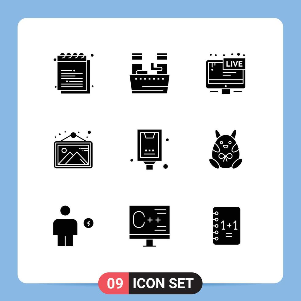 9 Solid Glyph concept for Websites Mobile and Apps frame image wellness gallery live Editable Vector Design Elements