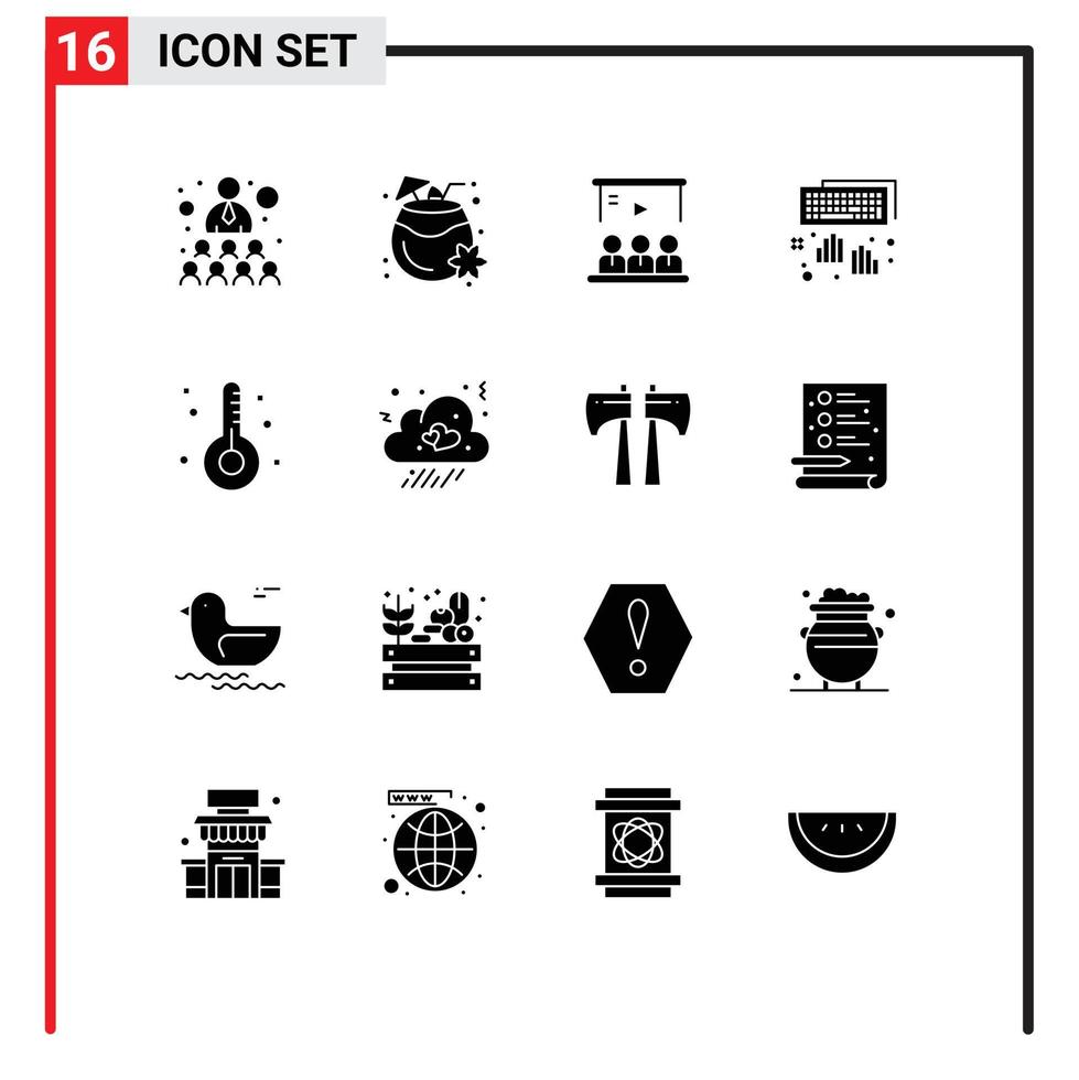 Set of 16 Vector Solid Glyphs on Grid for disease programming presentation keyboard user Editable Vector Design Elements