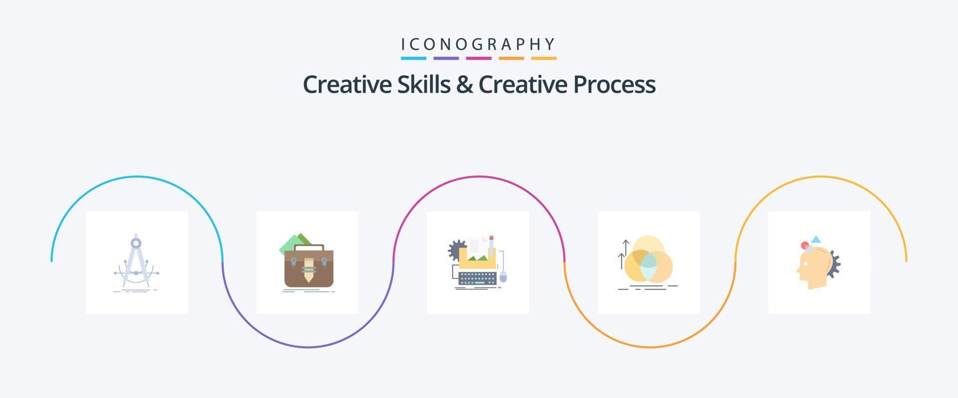 Creative Skills And Creative Process Flat 5 Icon Pack Including alignment. balance. folder. keyboard. computer vector