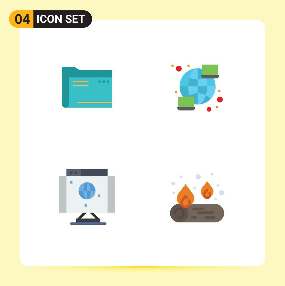 Set of 4 Vector Flat Icons on Grid for folder network document storage computer Editable Vector Design Elements Free Vector and Free SVG