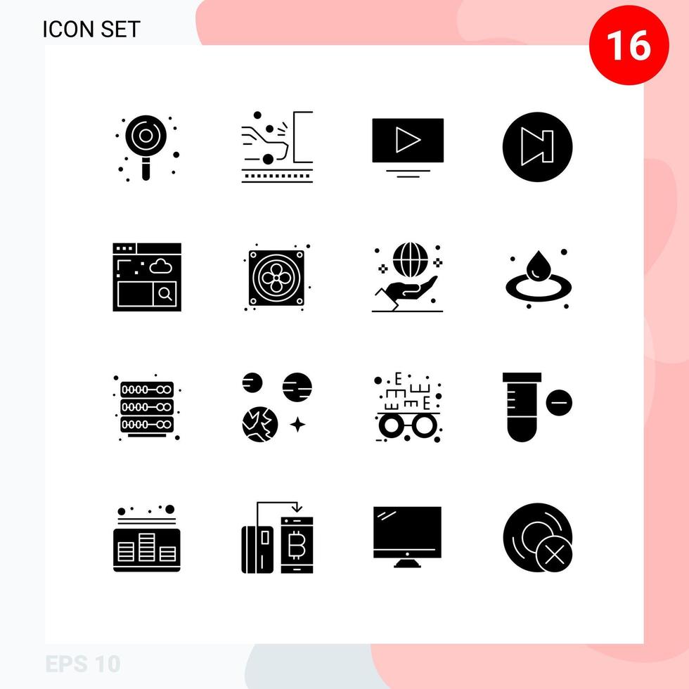 16 Universal Solid Glyphs Set for Web and Mobile Applications search browser traffic next arrow Editable Vector Design Elements