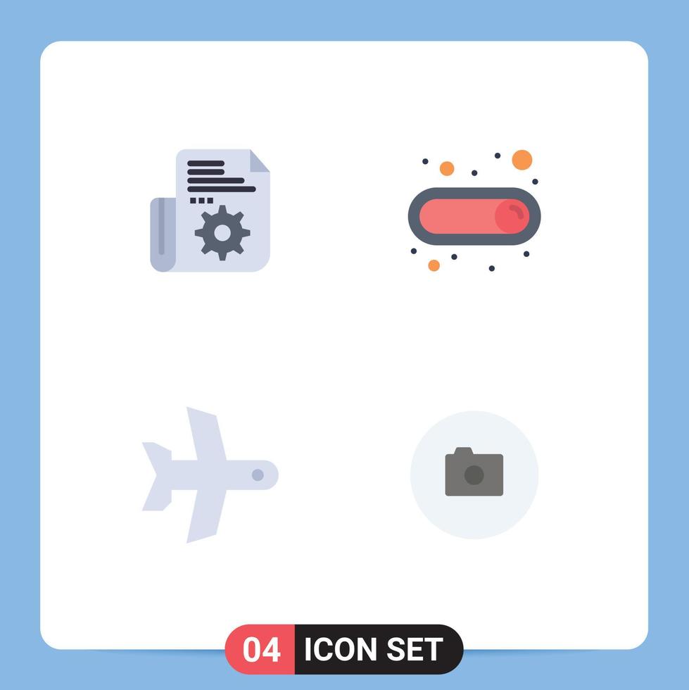 Group of 4 Modern Flat Icons Set for document transport tools toggle camera Editable Vector Design Elements
