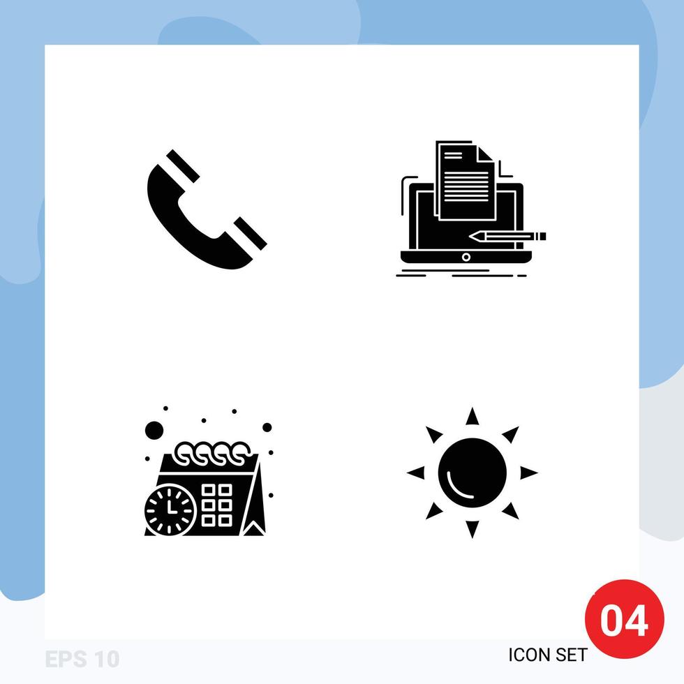 Group of Solid Glyphs Signs and Symbols for call calendar ui computer time Editable Vector Design Elements