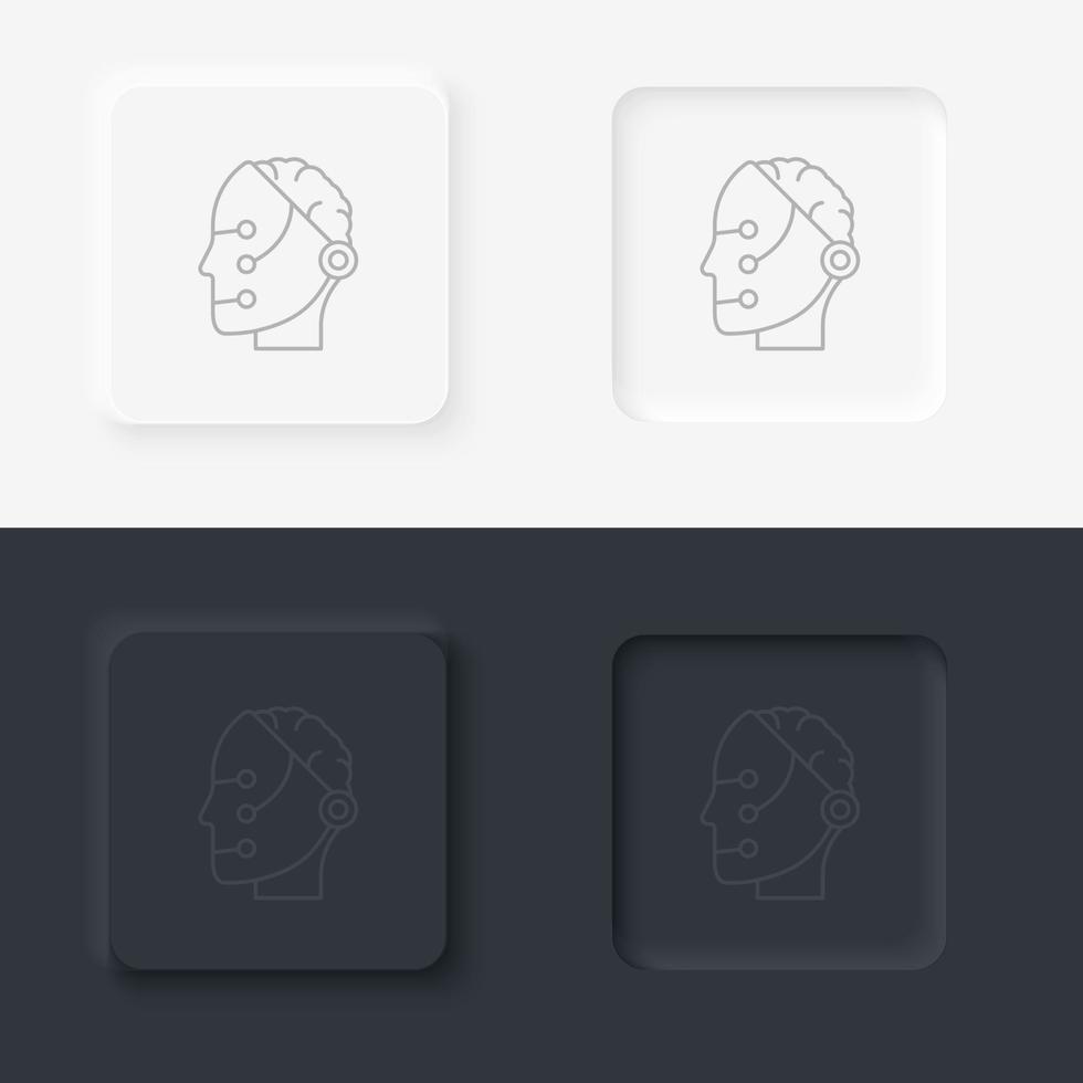 Memory, robot, intelligence neumorphic style vector icon, smart icon - Vector. Artificial intelligence neumorphic style vector icon set Pro Vector