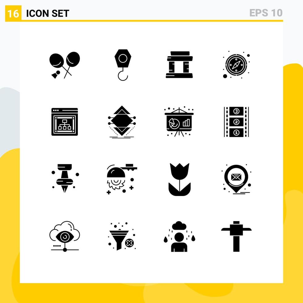 Universal Icon Symbols Group of 16 Modern Solid Glyphs of computing web paris seo gps Editable Vector Design Elements